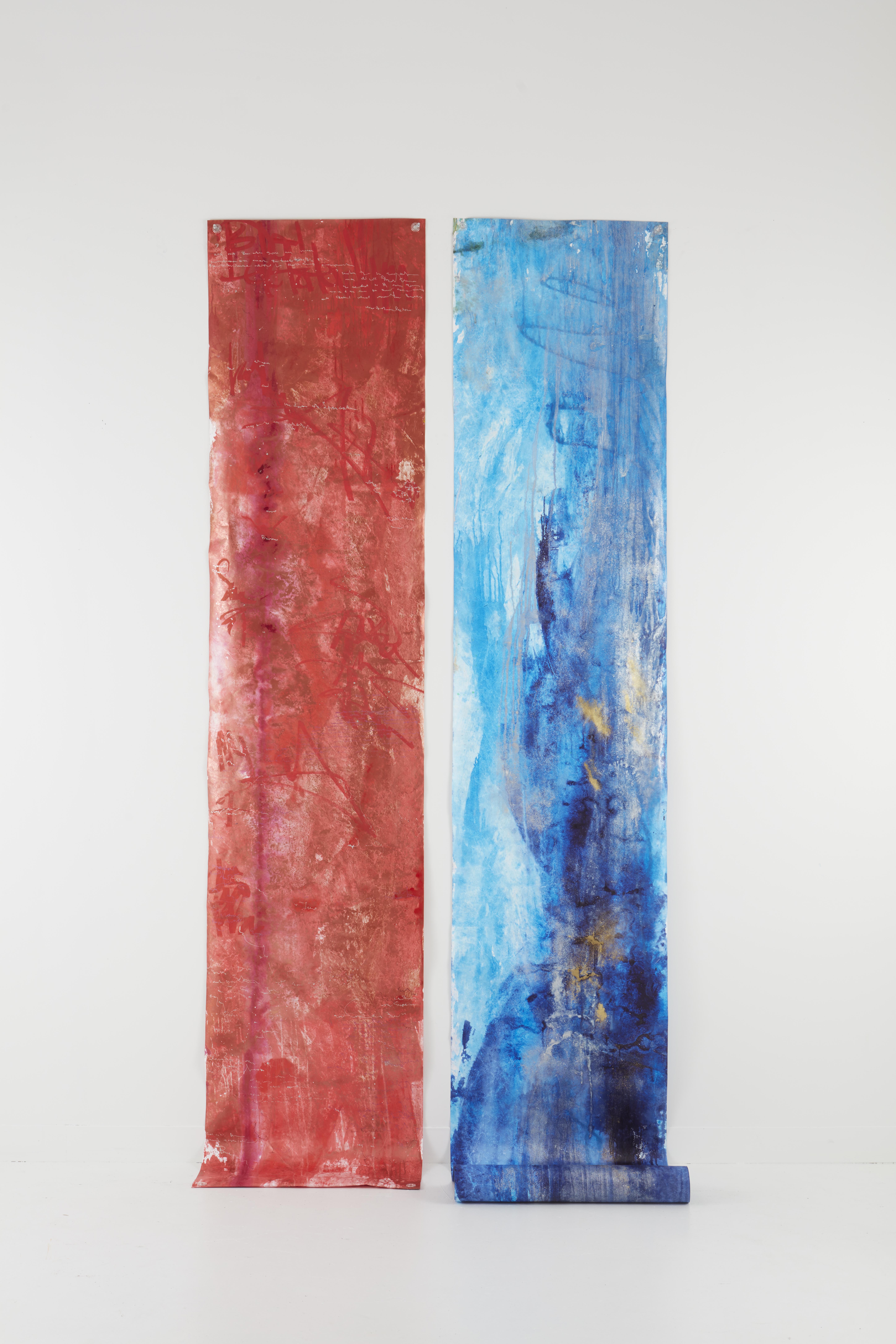 All materials were sent to Rania in one single suitcase with detailed Exhibition Instructions to assist with the installation. In order to do this, all paintings and interactive components were created on Tyvek®, a light weight, resistant material often used for industrial packing and housing insulation! The creative use of the material was essential in bringing this exhibition to fruition. The materials needed to be ultra lightweight and packable in order to comply with customs regulations to enter the country. Also shipped with the materials was an iPod to document the entire process. Photos and videos taken by a citizen volunteer of Rania, Ari Mstafa, are showcased here.